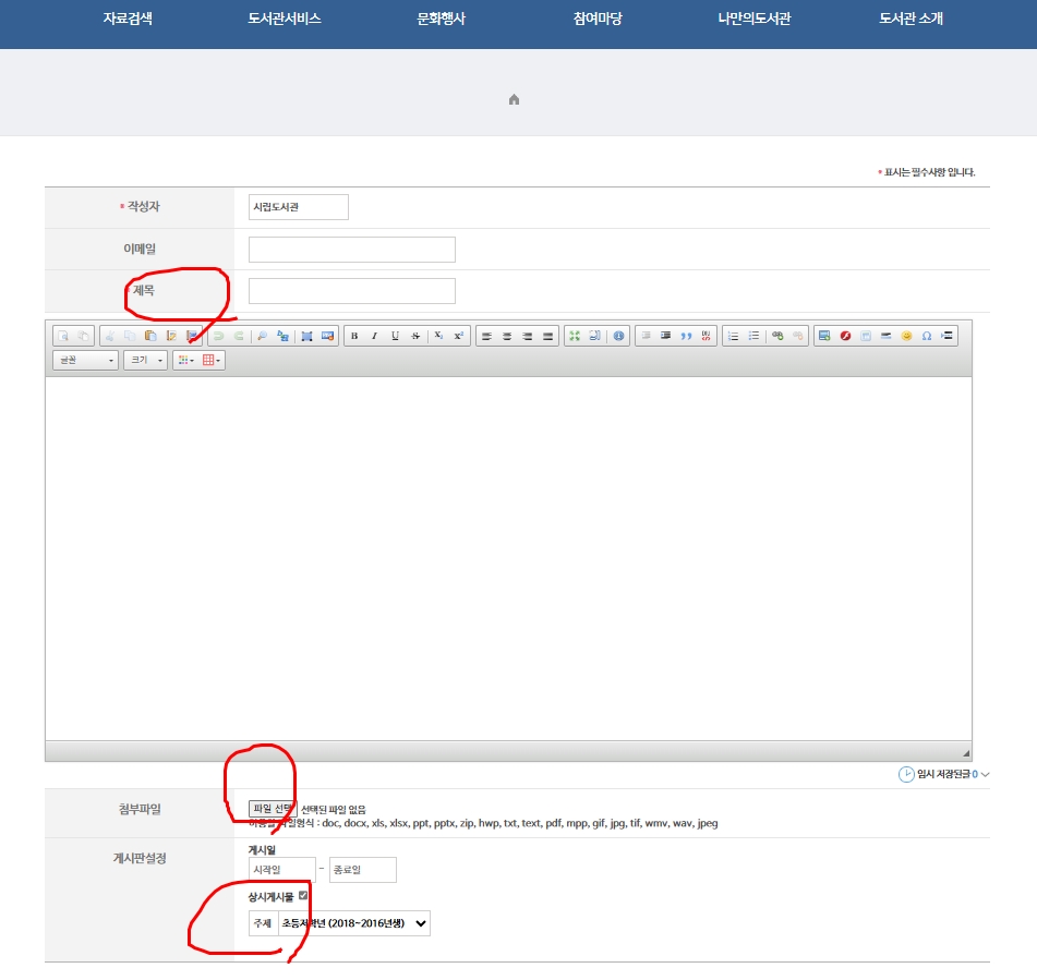 도서관홈페이지 로그인 후>문화행사 >읽는사람공모전> 쓰기를 누르시고