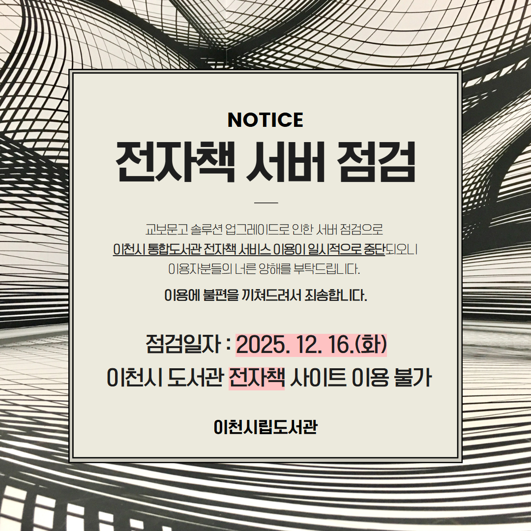 - 이천시 통합도서관 전자책 솔루션 업그레이드로 인한 이용 불가