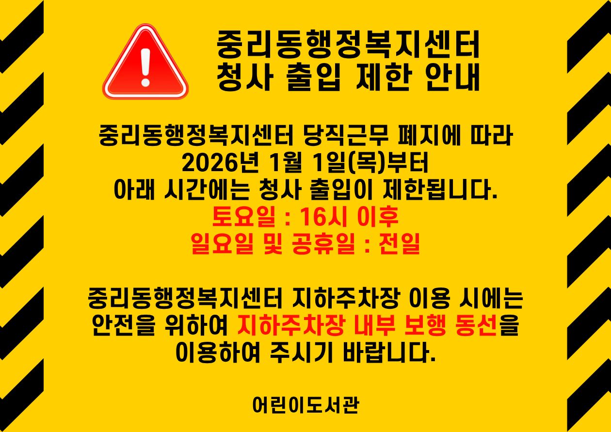 2026년 1월 1일(목)부터 아래 시간에는 청사 출입이 제한됩니다.