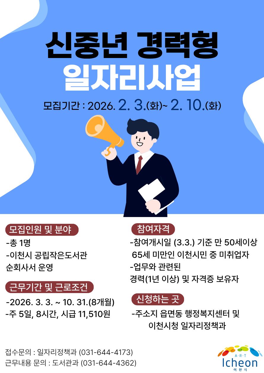 2026년 이천시 신중년 경력형 일자리사업 참여자 모집 재공고(2차)