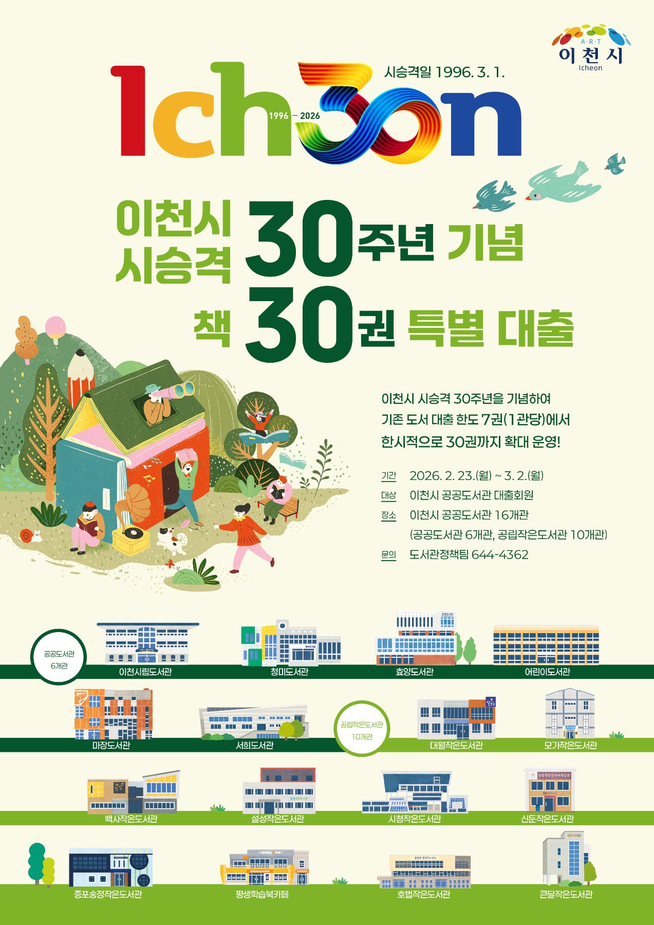 이천시 시승격 30주년 기념 책 30권 특별 대출 안내