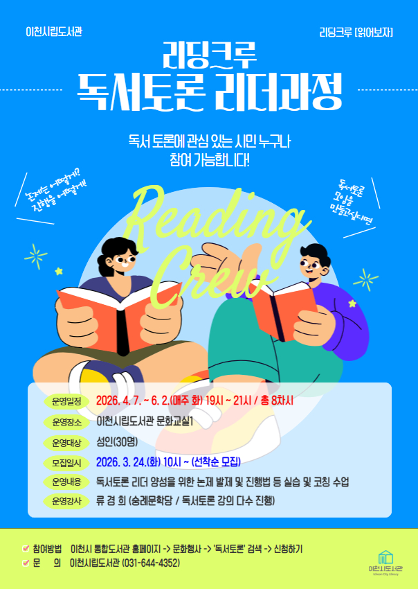 이천시 도서관과 시립도서관팀 (☎ 031-644-4352)