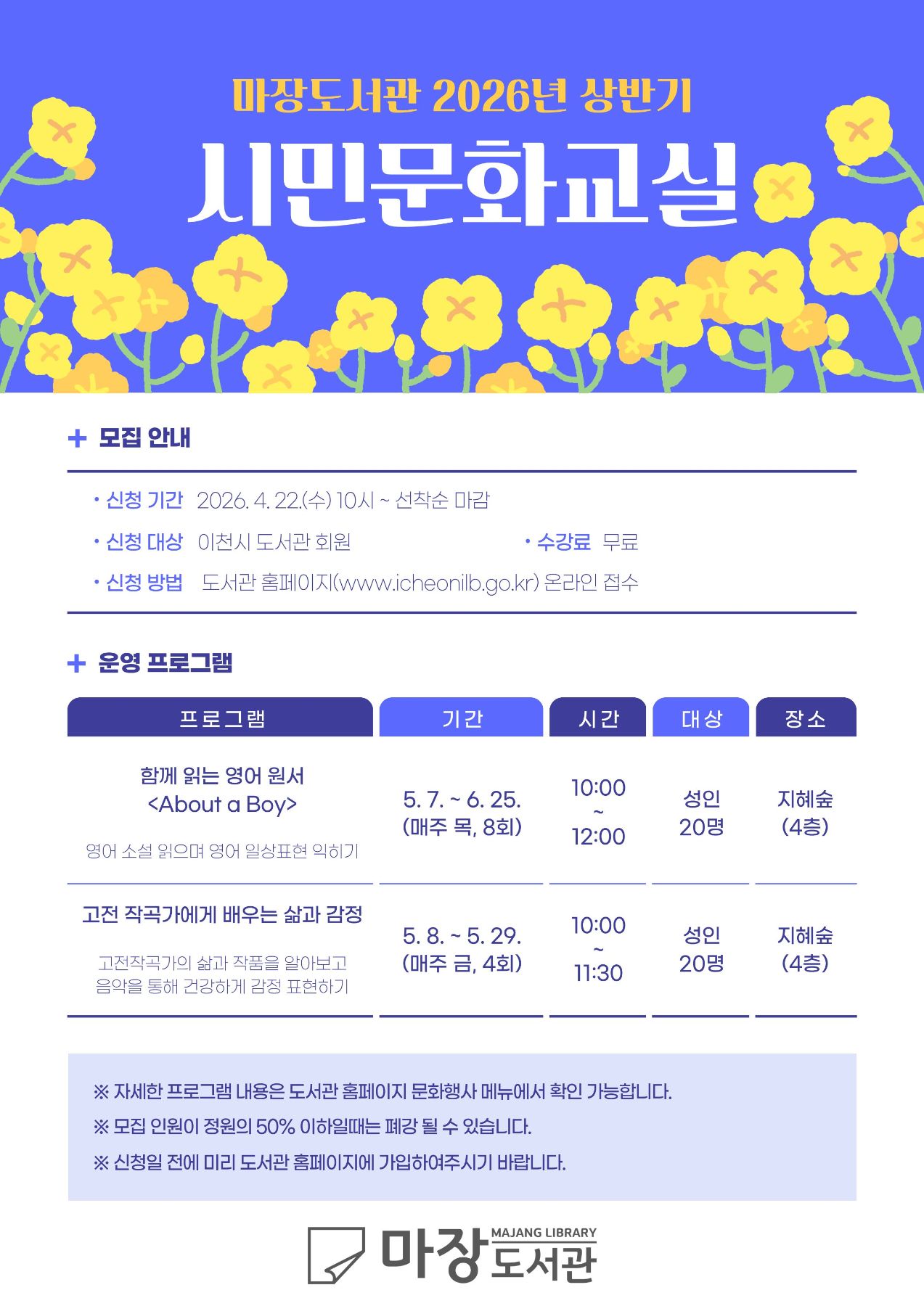 2026년 상반기 마장도서관 시민문화교실