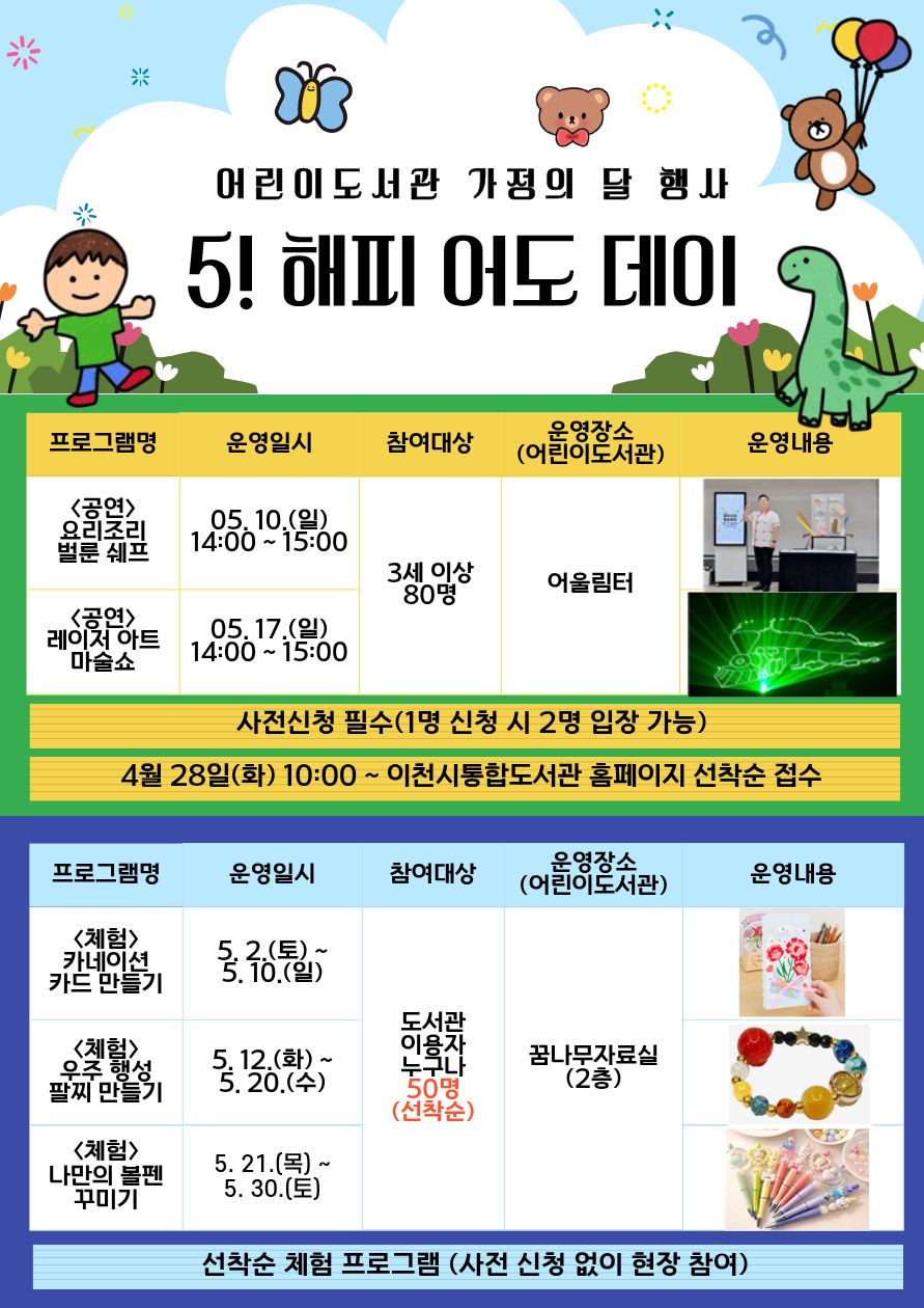 어린이도서관 가정의 달 행사 「5! 해피 어도 데이」 운영