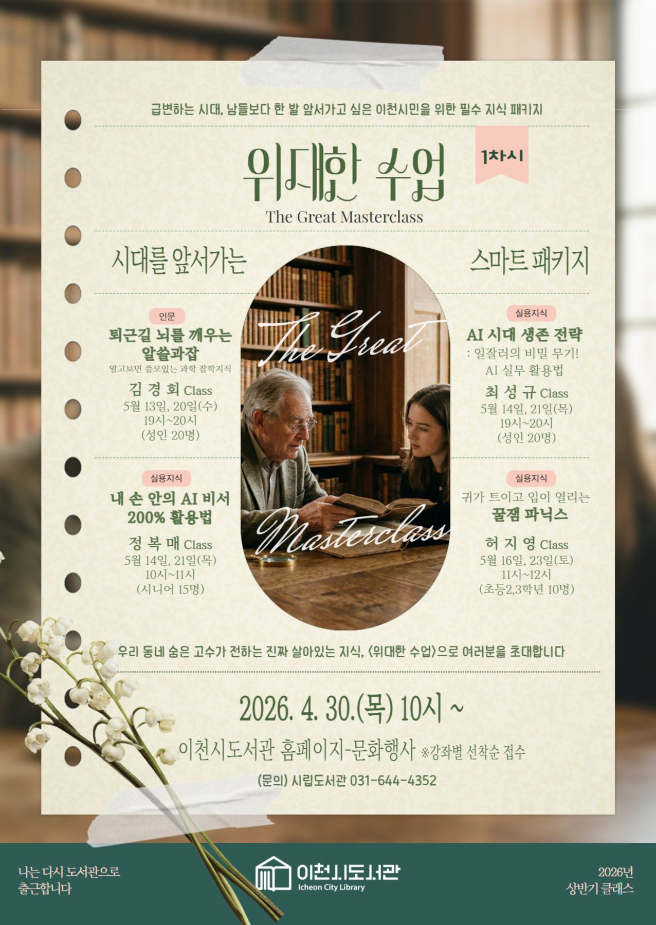 이천시립도서관에서 꼼꼼히 선발한 8명의 시니어 강사가 특별한 강좌 패키지,