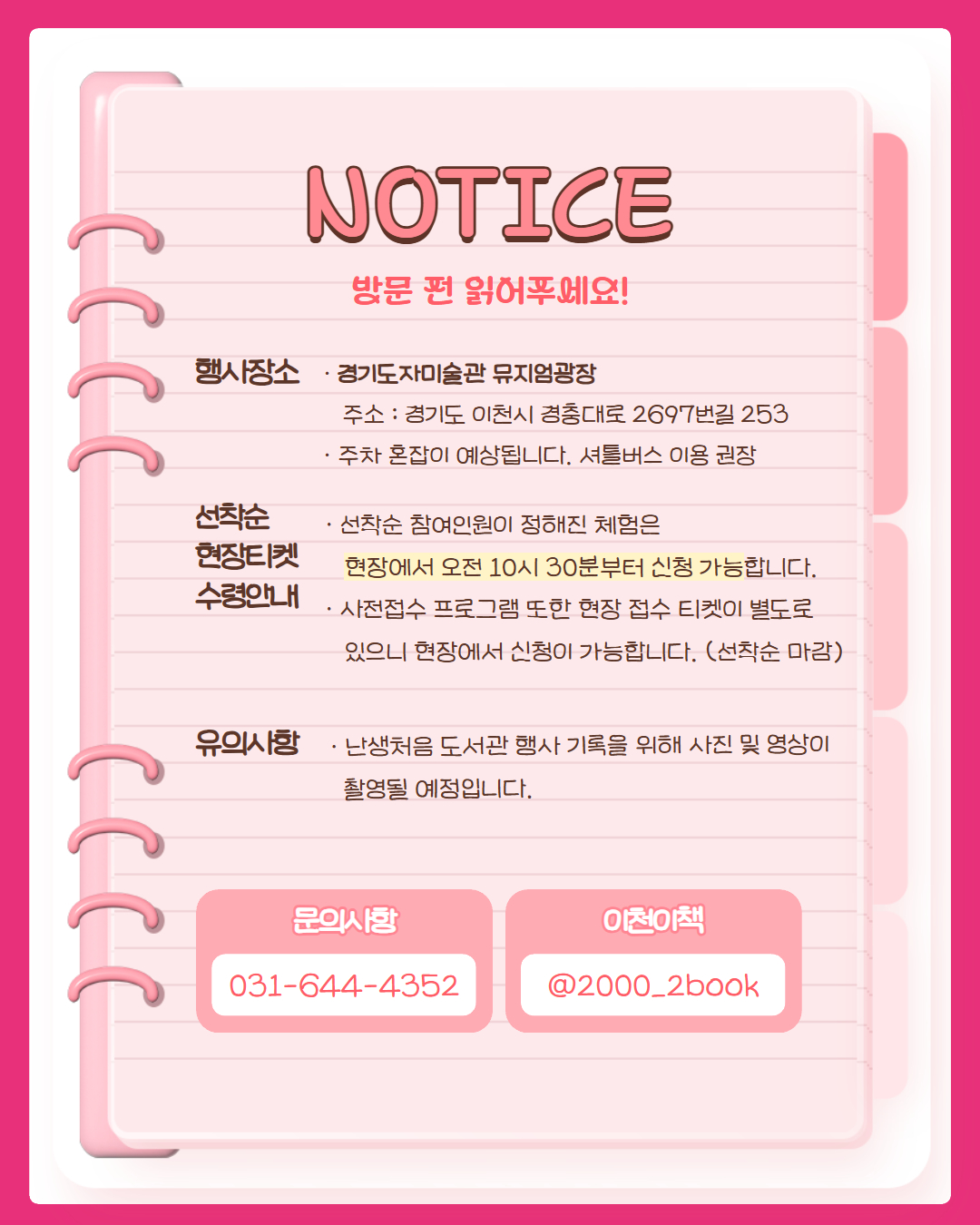 [2025 이천이책] 난생처음 도서관 현장 자율체험 프로그램 안내