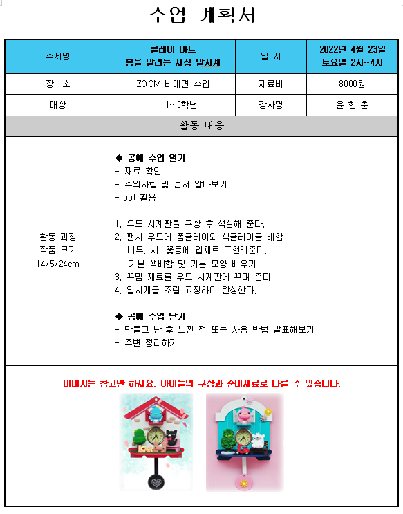 봄을 알리는 새집 알시계 만들기(온라인 ZOOM)