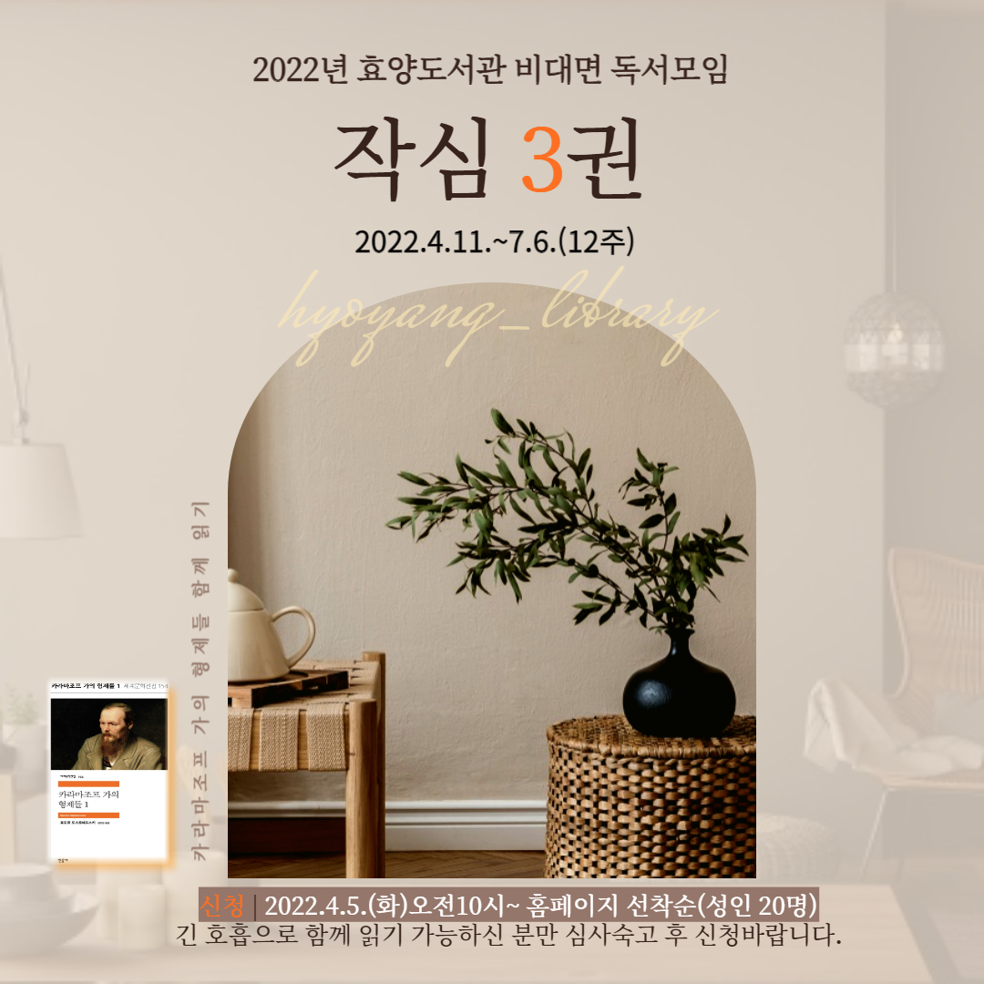○ 하루에 30페이지 이상의 책을 읽고 발췌 및 단상을 통해 완독을 할 수 있는 의지가 강하신 분들만 신청해주세요.