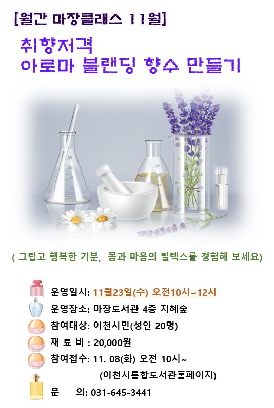 ○ 재 료 비 : 20,000원(1인20ml의 향수제작)