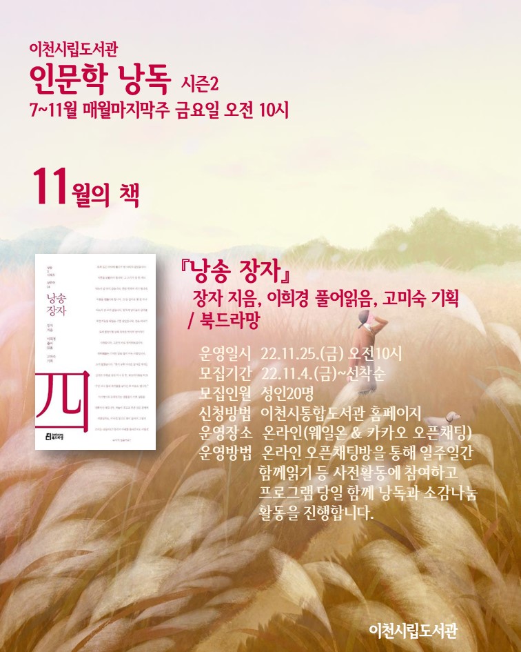 [이천시립도서관] [인문학 낭독 시즌2] 11월 - 낭송 장자