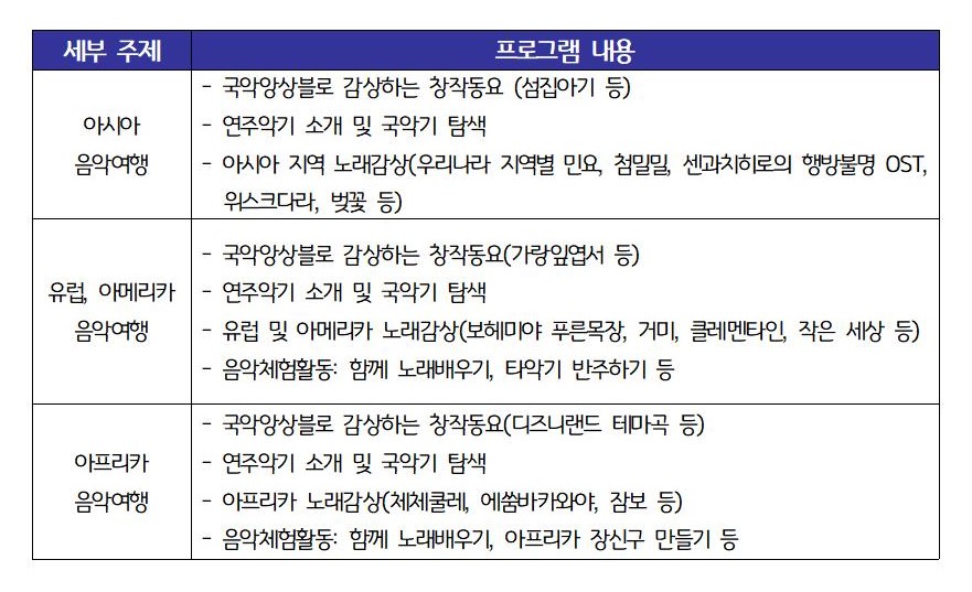 아시아, 유럽·아메리카, 아프리카 노래까지 다양한 세계음악을 즐길 수 있어요~