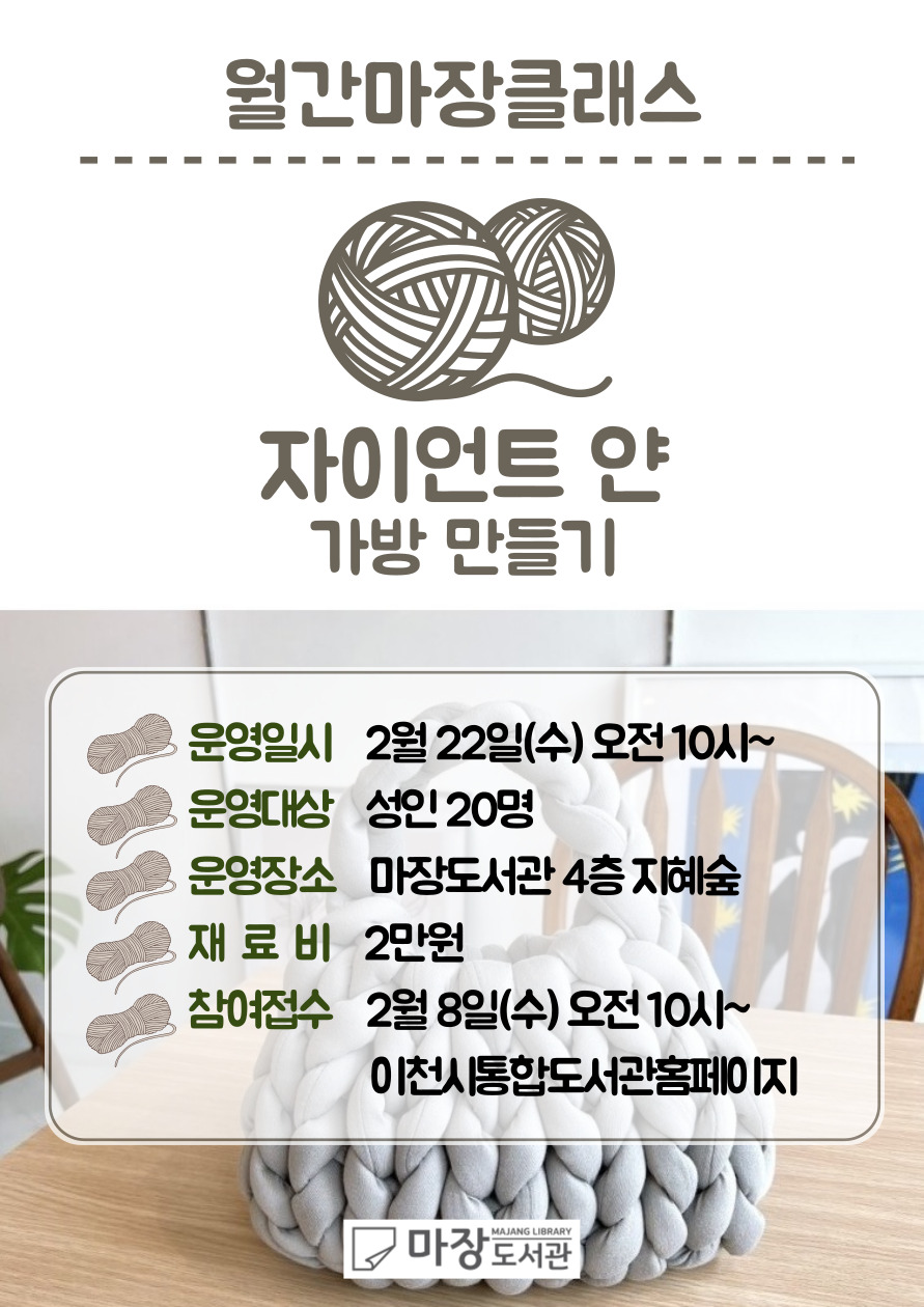 ● 재 료 비 : 20,000원(자이언트얀 가방 1개 기준)
