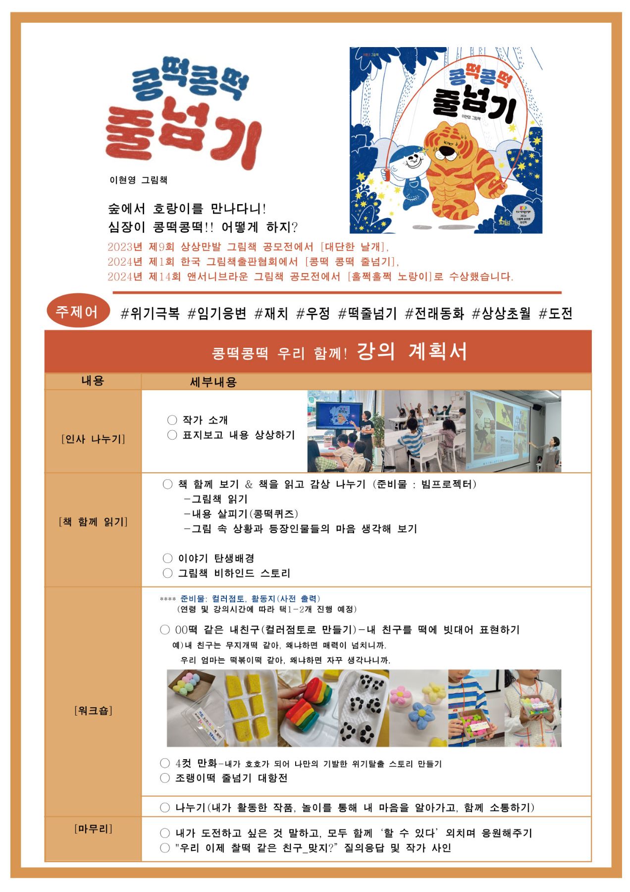 [추가모집] [독서의 달] [그림책 작가 특강] 이현영 작가: 콩떡콩떡 줄넘기