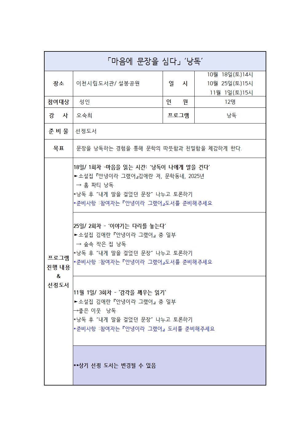 준비사항 : 참여자는 안녕이라 그랬어 도서를 준비해 주세요.