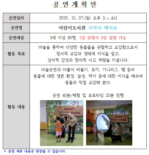 [송년의 달: 어도러블 크리스마스] [공연] 사파리 매직쇼