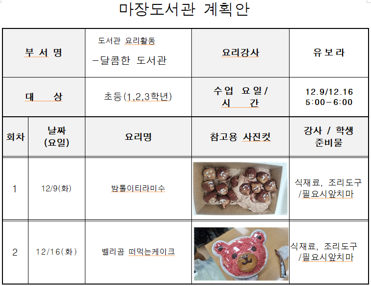 <송년의 달>크리스마스 요리교실 B (초등1-3학년)