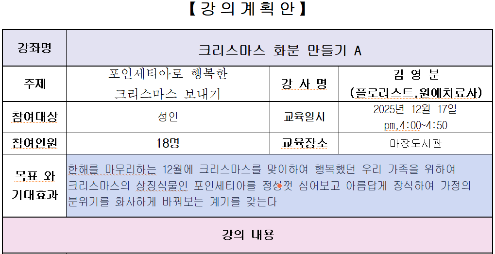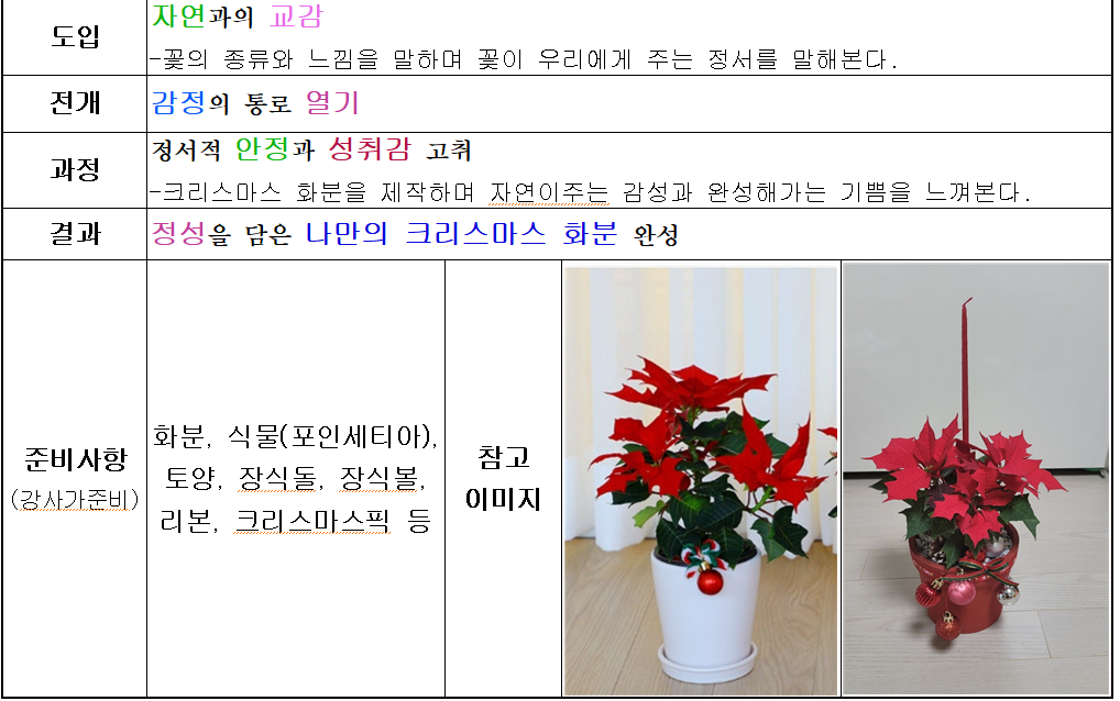 "크리스마스 포인세티아 화분 만들기 프로그램입니다.^^