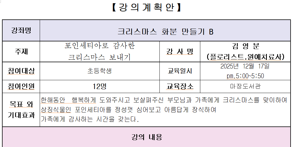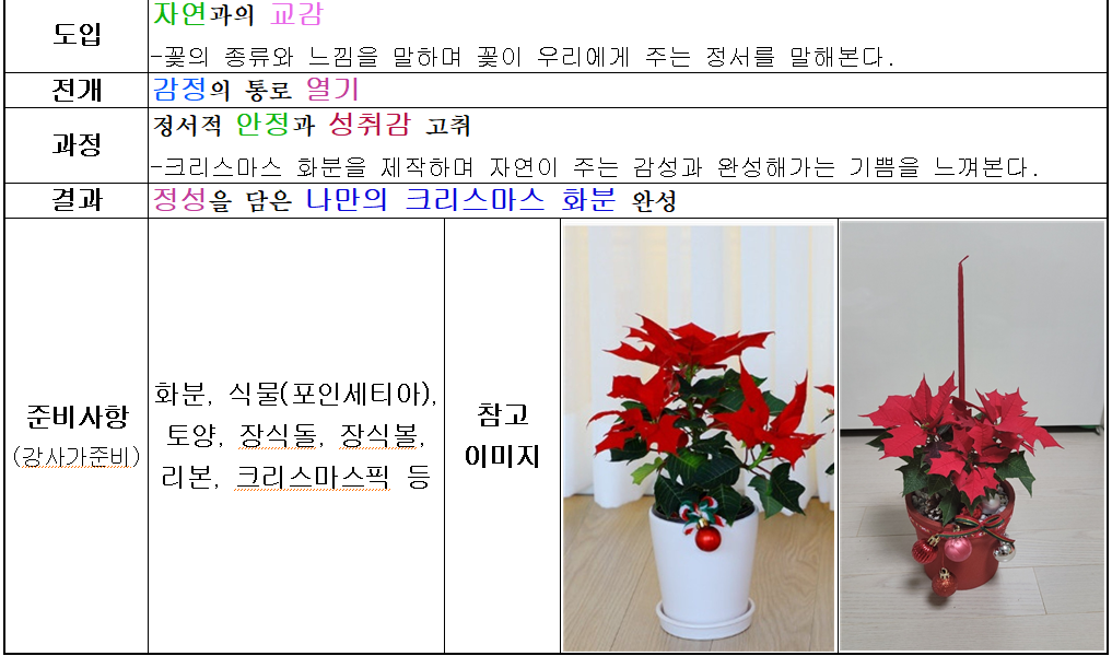 "크리스마스 포인세티아 화분 만들기 프로그램입니다.^^