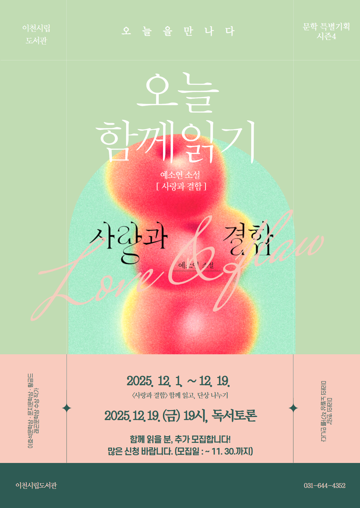▶ 모집일시 :도서관 홈페이지 선착순 (11. 30.까지)