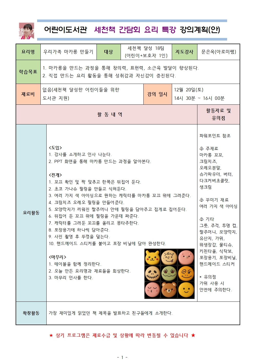 14:30 ~ 16:00 우리 가족 마카롱 만들기(어린이+보호자 1인)
