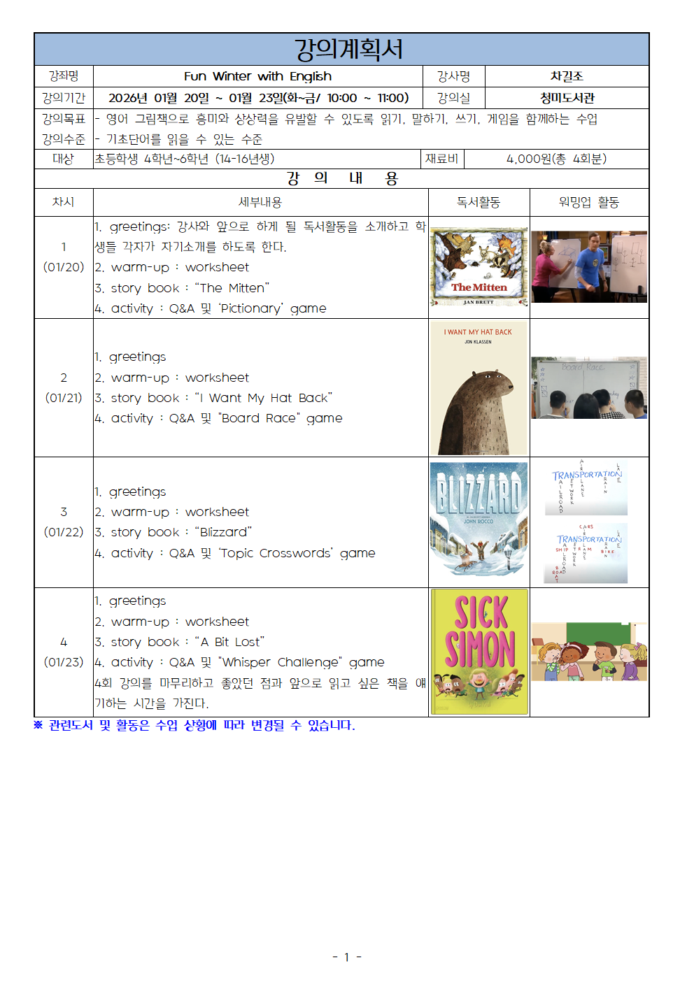 청미도서관 [겨울 속 따뜻한 도서관] 즐거운 겨울, 영어와 함께A