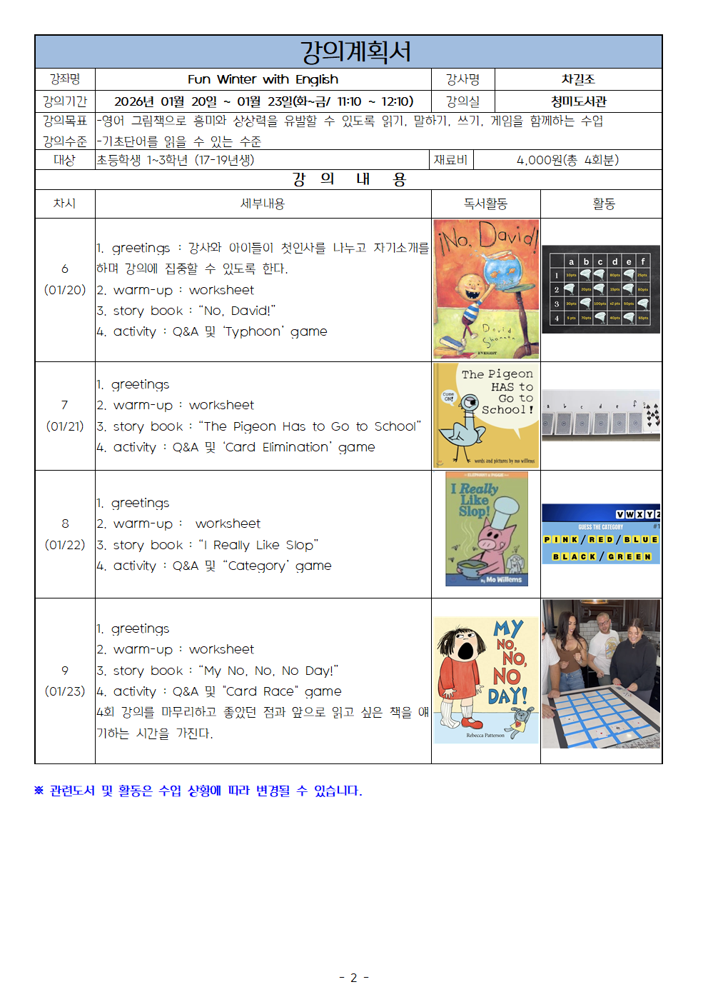 청미도서관 [겨울 속 따뜻한 도서관] 즐거운 겨울, 영어와 함께B