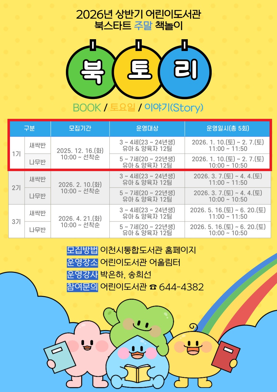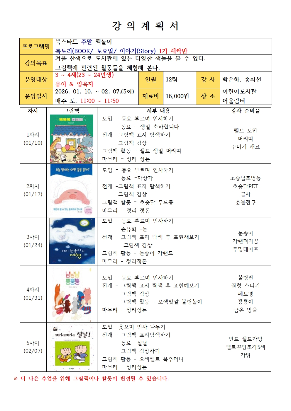 운영기간 : 2026. 1. 10. ~ 2. 7.(총 5회차) 매주 토요일, 오전 11시 ~ 11시 50분