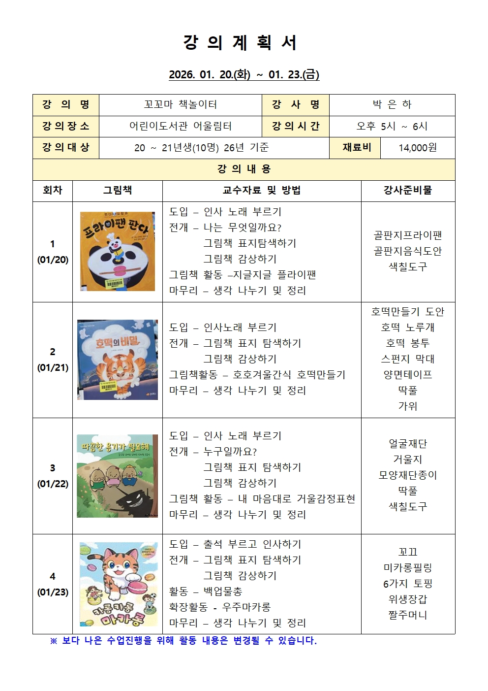 ✅일 시 | 2026. 1. 20.(화) ~ 1. 23.(금) 4차시 17:00 ~ 18:00