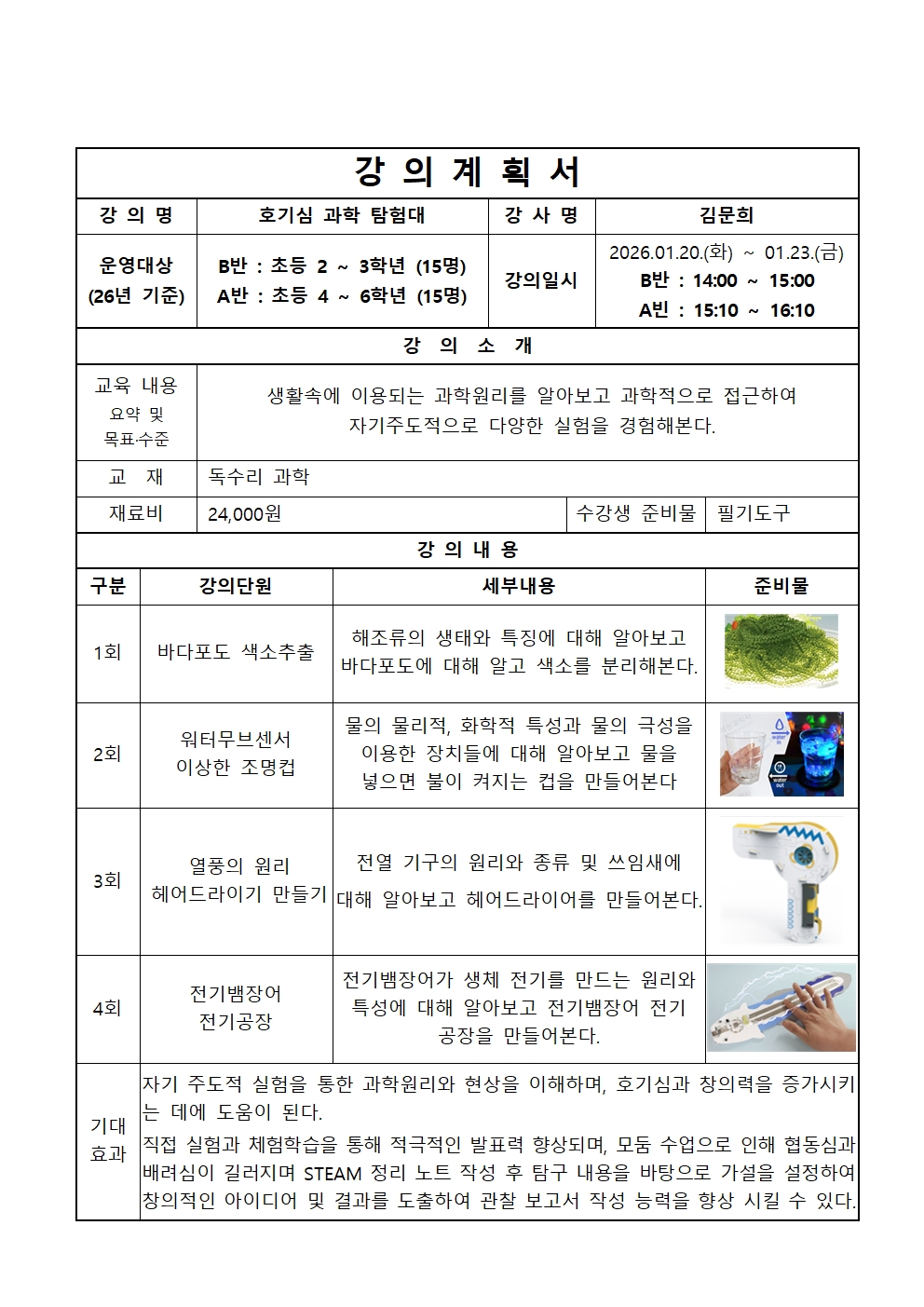 ✅일 시 | 2026. 1. 20.(화) ~ 1. 23.(금) 4차시 14:00 ~ 15:00