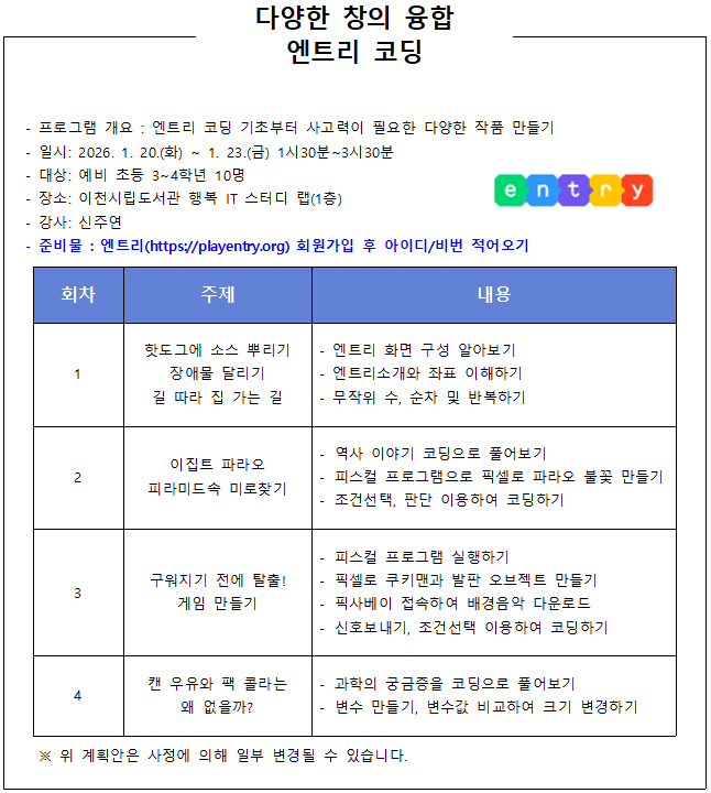 [이천시립도서관] [미아챌]다양한 창의 융합 엔트리 코딩
