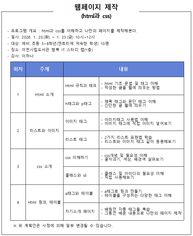 [이천시립도서관] [미아챌]웹페이지 제작(html과 css)