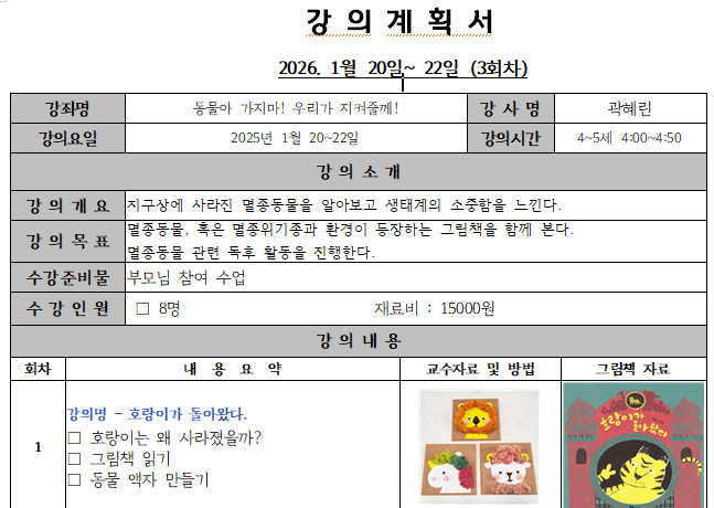 동물아 가지마! 우리가 지켜줄께! 유아4-5세(부모님 참여)
