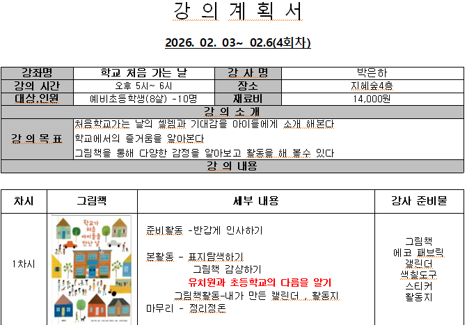 운영일시 : 2026. 2.3(화),4(수),5(목),6(금) 17:00~17:50 (4회차)