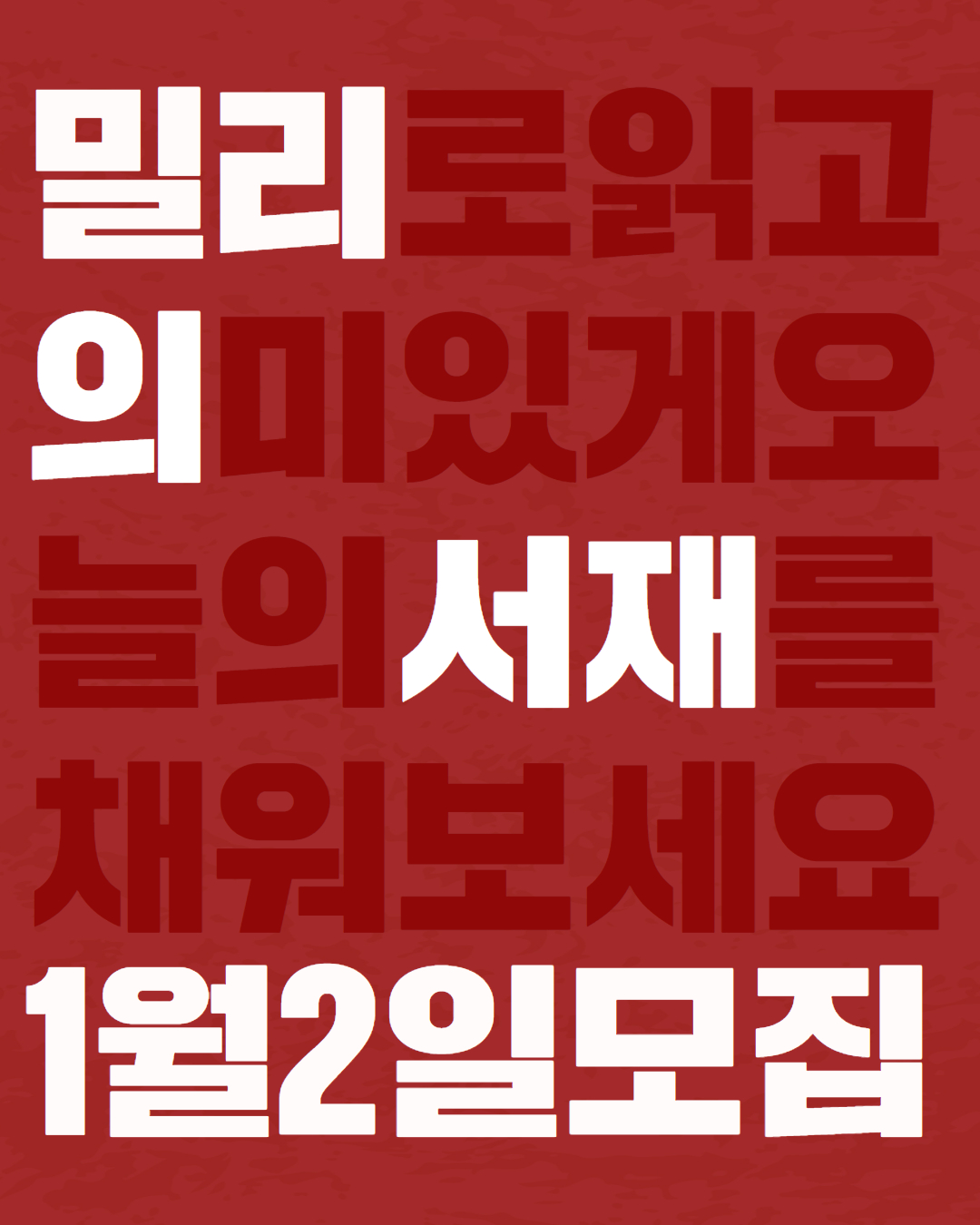 □ 사용방법 : 1월 12일(월) 오전 9시, 대상자에게 문자로 <밀리의서재> 아이디, 비번 발송