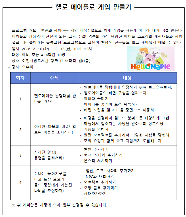 [이천시립도서관] [미아챌]헬로 메이플로 게임 만들기