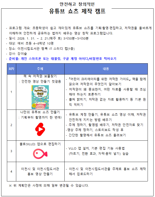 [이천시립도서관] [미아챌]유튜브 쇼츠 제작 캠프