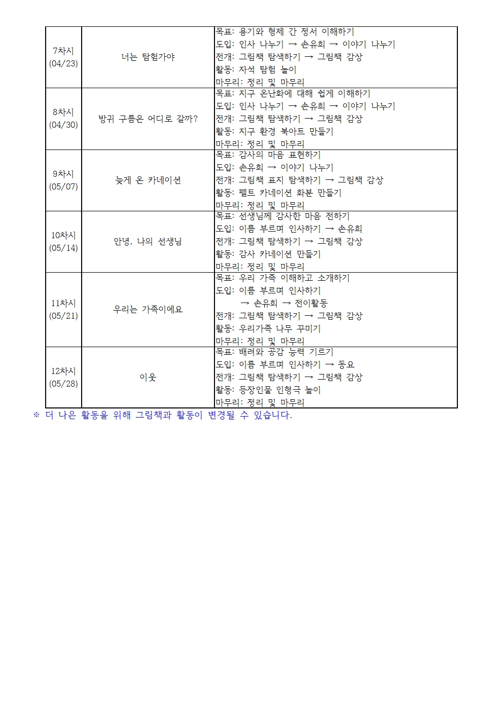연나이 7세 기준, 2020년생 유아가 참여하는 프로그램입니다.