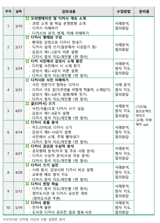 * 수업 사진이 도서관 홍보활동에 사용될 수 있습니다. 신청시 이에 동의한 것으로 간주합니다.