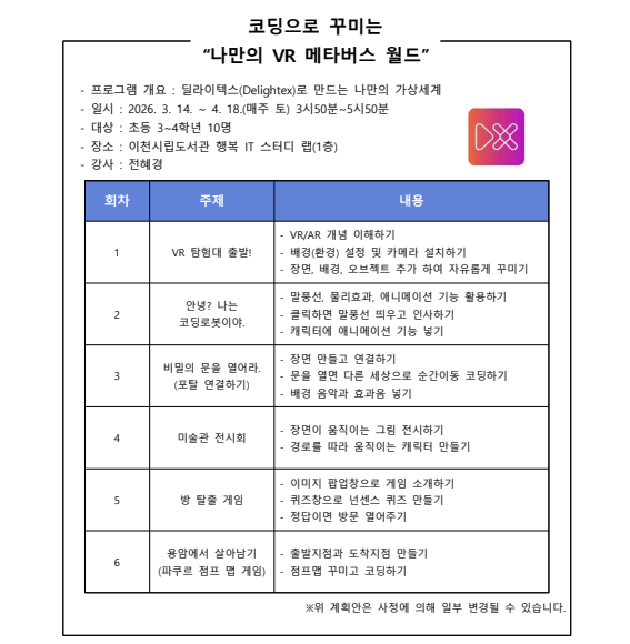 [이천시립도서관] [미아챌] 코딩으로 꾸미는 나만의 VR 메타버스 월드