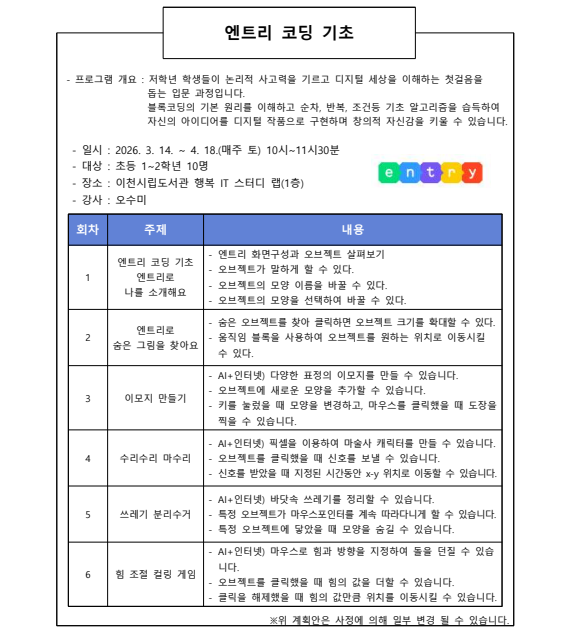[이천시립도서관] [미아챌] 엔트리 코딩 기초
