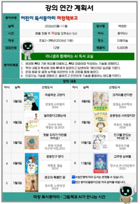 <어린이 독서동아리> '마장책보고'(라니샘과 함께하는 AI 독서교실)는