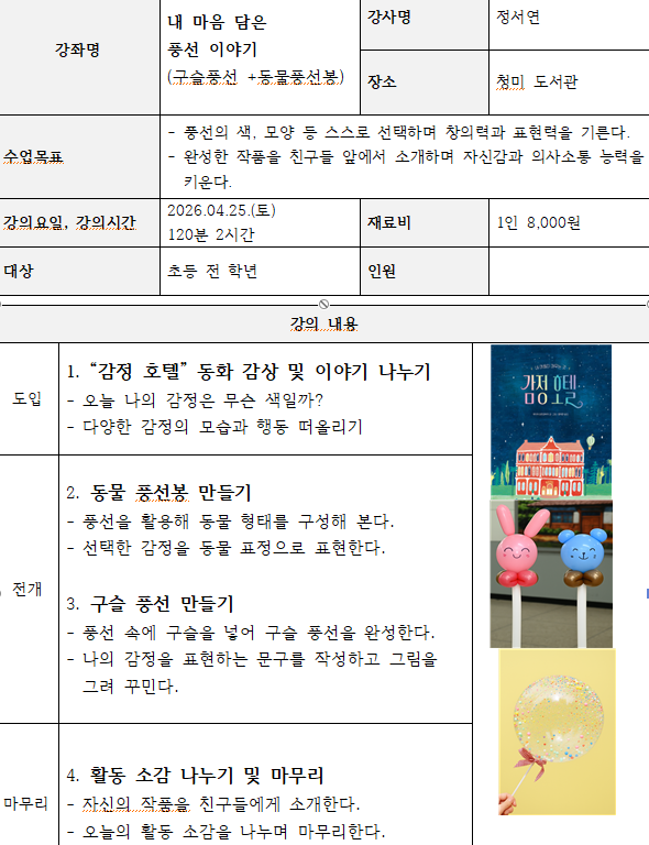 ▶운영일시 : 2026. 4. 25.(토) 13:00~15:00