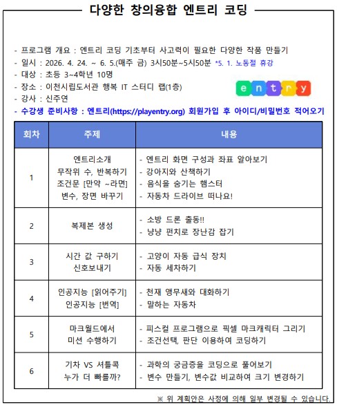 [이천시립도서관] [미아챌 2기] 다양한 창의융합 엔트리 코딩