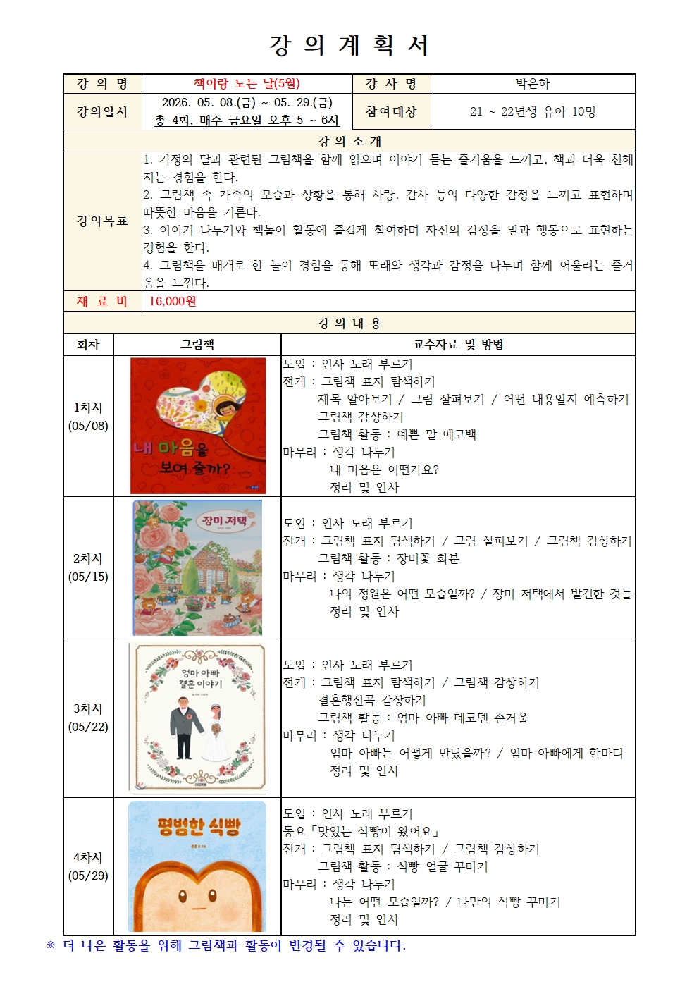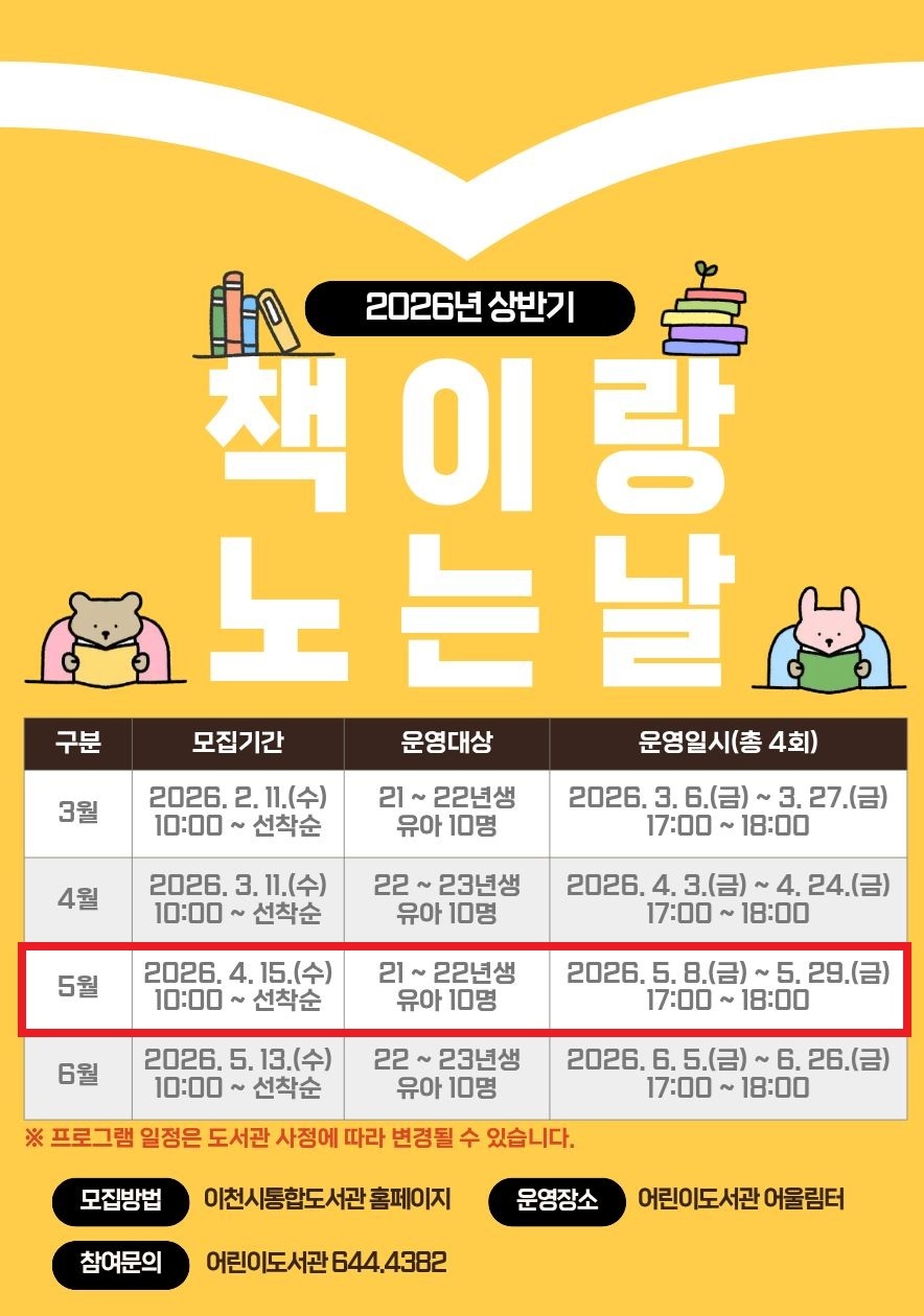 운영기간 : 2026. 5. 8. ~ 5. 29.(총 4회차) 매주 금요일, 오후 5시 ~ 6시
